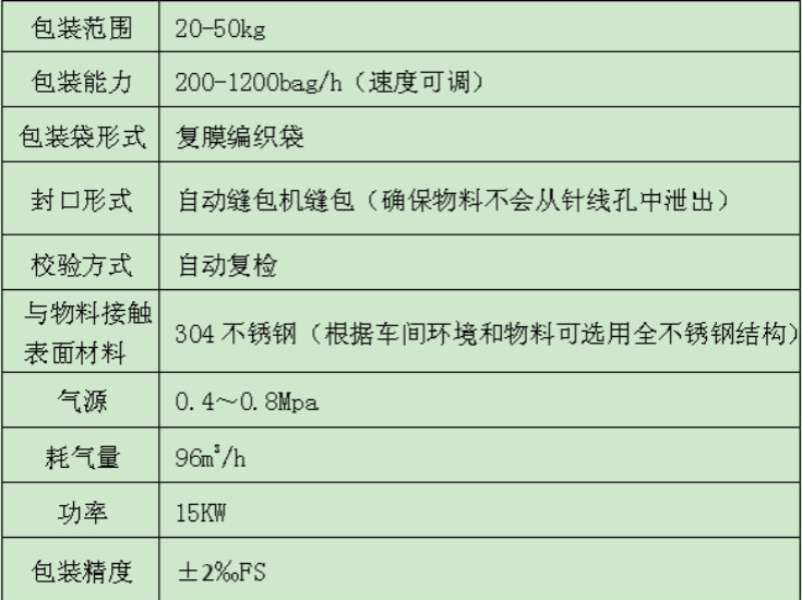 有机肥全自动包装秤能满足粉体物料或颗粒物料(称重范围10-50kg)产品的称重、供袋、取袋、夹口、装袋、折边、缝袋、倒袋整形、重量检测、超限剔除、自动压平、调姿、编组、分层升降等作业,并全部实现自动化。可包装:有机肥、复合(混)肥、掺混肥、树脂包衣尿素、硫包衣尿素;称量范围:25、50㎏/bag;包装速度:400-600bag/h(可根据物料特点及客户要求);称量精度:±2‰;正常进口温度:常温;安装位置:室内;工作环境温度:-20~+45℃;包装袋:包装袋结构形式:塑料编织袋,单向开口,内覆塑料膜包装袋规格:50kg:800(长)*560(宽)*150(高),40kg:800(长)*500(宽)*130(高);包装袋制造标准:符合GB/T15063---2001,重量120克及以上。