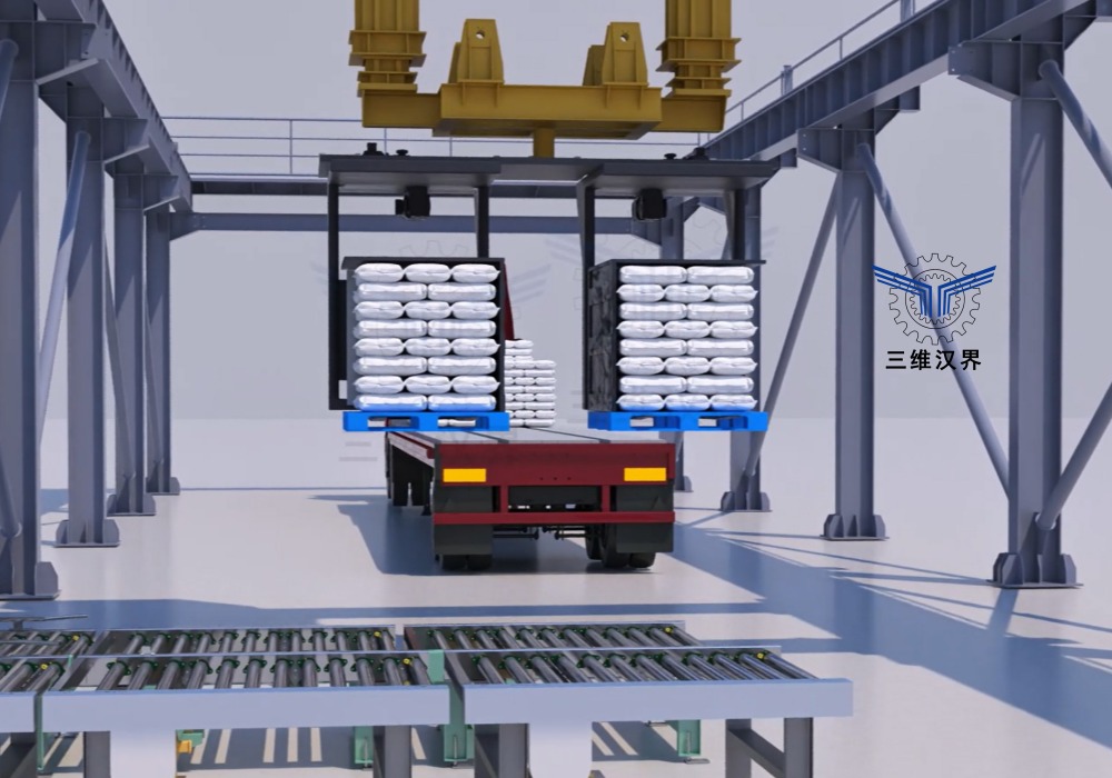 如果是推板式,推板会向前运动,将最前面的一层货物从托盘上“推”到等待的装车臂或传送带上,同时后面的货物被挡板挡住。托盘则被保留在翻转机构上。