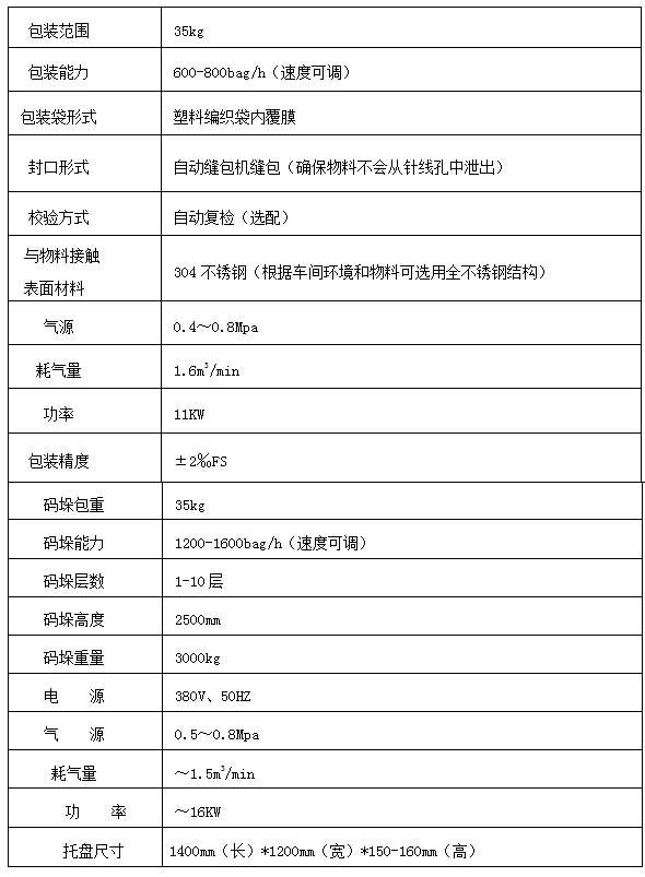 5、堆垛分层升降装置,通过位置控制实现八层包装袋的堆垛,空托盘自动供给,动作连续、准确可靠。